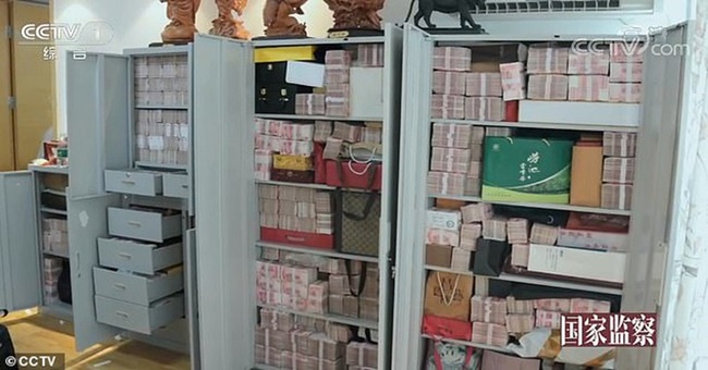 Tủ và két sắt ở nhà ông Lai chứa hàng tấn tiền mặt. (Ảnh: CCTV) |