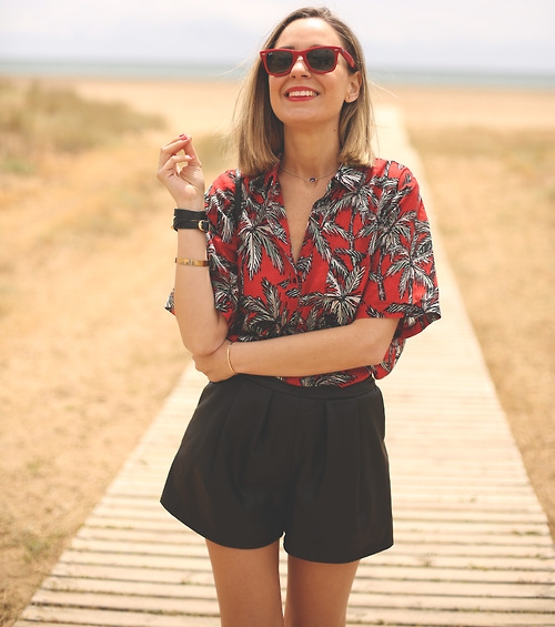 | Sơ mi họa tiết phối short hay playsuit (áo liền quần ngắn) thích hợp cả style máy mẻ thường ngày lẫn những kỳ nghỉ mát. |