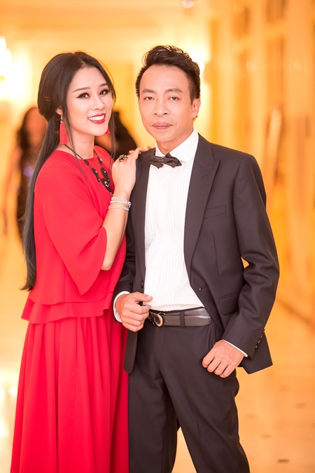 Giọng ca "Bỉ ngạn đỏ" gây chú ý với hình ảnh đỏ rực, lộng lẫy khi sánh đôi cùng chồng - NSƯT Việt Hoàn trong một sự kiện vừa diễn ra tại Hà Nội.