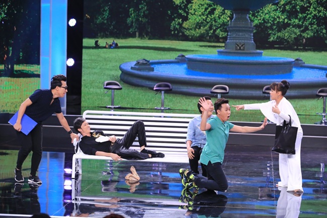Đặc biệt, danh hài Hoài Linh với cương vị đàn anh nên rất lười, chỉ nằm một chỗ. Không bỏ qua dễ dàng như thế, các diễn viên còn lại đã hợp tác với nhau ép nam danh hài phải thay đổi tư thế và quỳ trước hàng trăm khán giả.