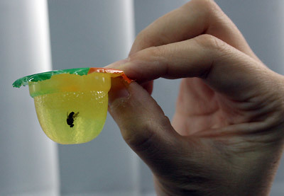 Con ruồi con nằm gọn trong miếng thạch Long Hải. (Ảnh: VnExpress) |