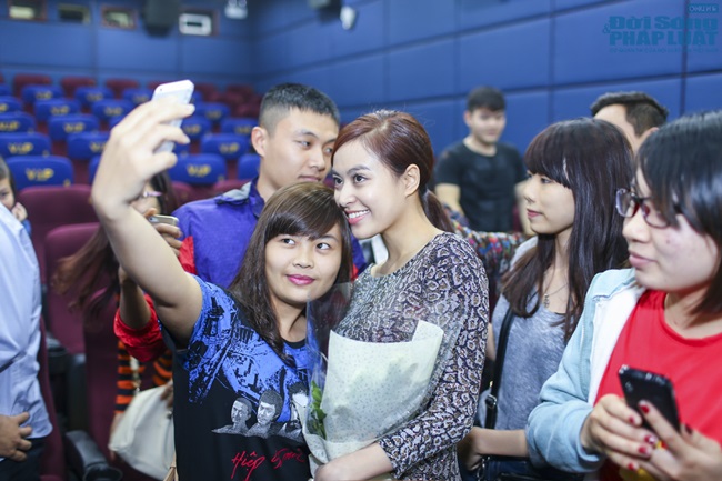 | Hai nhân vật chính của phim - Hoàng Thùy Linh và Harry Lu được nhiều fan xin chụp hình lưu niệm. |