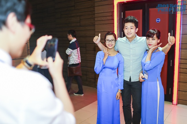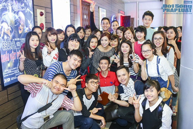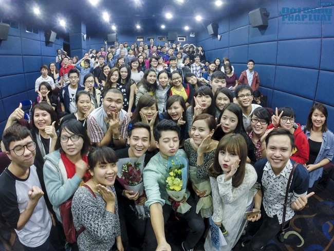 Ekip phim Thần Tượng chụp hình cùng khán giả trong buổi giao lưu. |