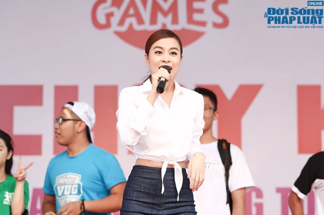Sự gần gũi và dễ thương của Hoàng Thùy Linh đã nhận được rất nhiều lời yêu thương và cổ vũ nhiệt tình của hàng nghìn sinh viên có mặt tại chương trình. |