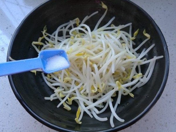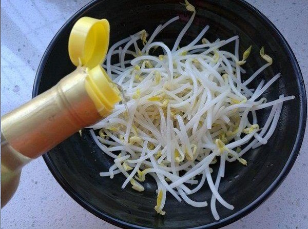 - Bước 3: Cho giá đỗ vào bát rồi thêm chút muối, giấm gạo, dầu mè, bột nêm vị gà vào trộn đều là xong.