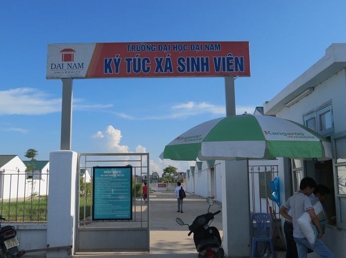 Ký túc xá sinh viên ĐH Đại Nam nhìn từ cổng vào. |