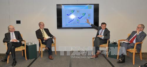 Các học giả trình bày tham luận tại cuộc hội thảo. - Ảnh: TTXVN. |