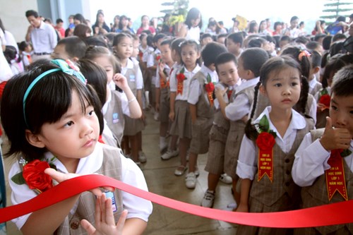 Lễ đón học sinh lớp 1 tại Trường tiểu học Phù Đổng Đà Nẵng. |