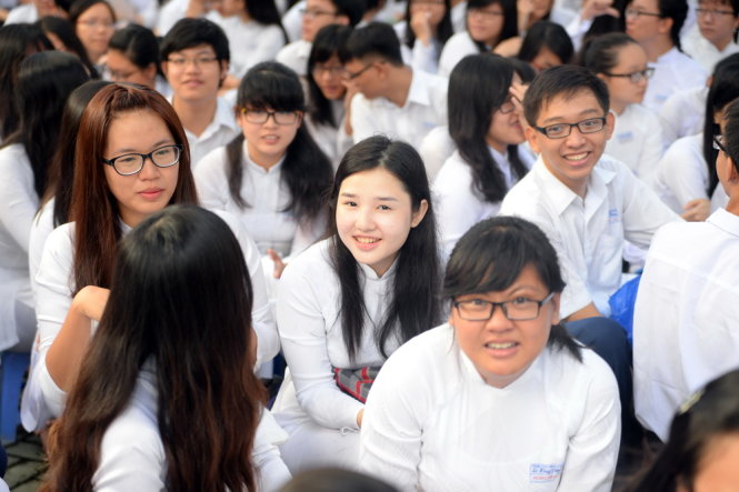 Học sinh trường Lê Hồng Phong nhộn nhịp trong lễ khai giảng sáng 5/9 - Ảnh: Hữu Khoa |