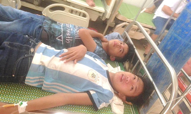 Một số học sinh bị ong đốt phải nhập viện. Ảnh: Dân trí. |