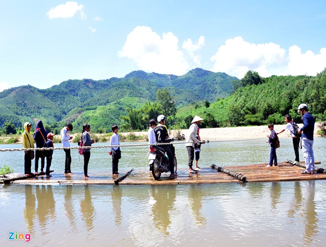 | Trao đổi với Zing.vn, ông Đinh Văn Phèng, Chủ tịch UBND xã Sơn Bao cho biết, địa phương có 300 hộ dân với hơn 1.500 nhân khẩu ở 4 thôn gồm Nước Rinh, Mang Nà, Nước Bao và Nước Tang nằm cách biệt bên kia dòng sông Tang, sông Rin. Vì điều kiện ngân sách địa phương hạn hẹp nên hàng năm chỉ hỗ trợ vài triệu đồng cho người làm nghề đu dây kéo bè, ghe đưa học sinh và dân qua sông. "Do mức hỗ trợ quá thấp, nhiều lần người lái xin nghỉ hoặc lơ là công việc của mình. Kể từ đó, sau mỗi buổi học, nhiều lúc học sinh phải tự đu dây kéo bè, ghe tự vượt sông về nhà", ông Phèng nói. |