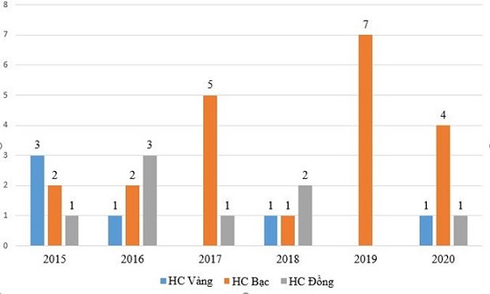 Kết quả thi Olympic Tin học châu Á của đội tuyển Việt Nam 5 năm gần đây. Ảnh: Vietnamplus. |