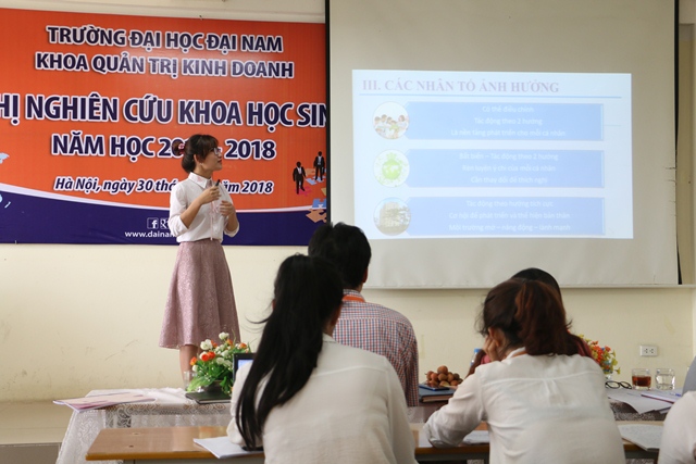 Ngày 30/5, Khoa Quản trị Kinh doanh (QTKD) - Trường Đại học Đại Nam đã tổ chức thành công Hội nghị Nghiên cứu khoa học (NCKH) sinh viên năm học 2017-2018. Đây là hoạt động diễn ra thường niên và được Khoa QTKD hết sức quan tâm, tạo một môi trường giúp sinh viên có cơ hội tiếp cận công tác nghiên cứu khoa học, trau dồi thêm kiến thức và kinh nghiệm làm việc thực tế.