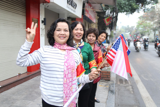 | Người dân tưng bừng cờ hoa đón chào |