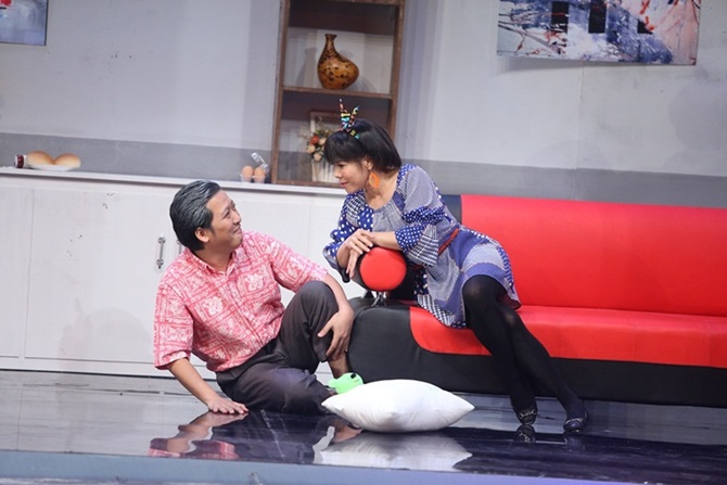 Sự chênh lệch tuổi tác khiến cả hai nhiều lúc khó xử, Trường Giang ngậm ngùi: “Hôm trước dắt bà vào nhà hàng với các ông bạn của tôi, ai cũng nói tôi dắt cháu đi đâu vậy?”, còn Việt Hương nói: “Anh tưởng tôi sung sướng lắm sao, bạn tôi cũng nói đi uống trà sữa dắt ông nội theo làm gì?”.