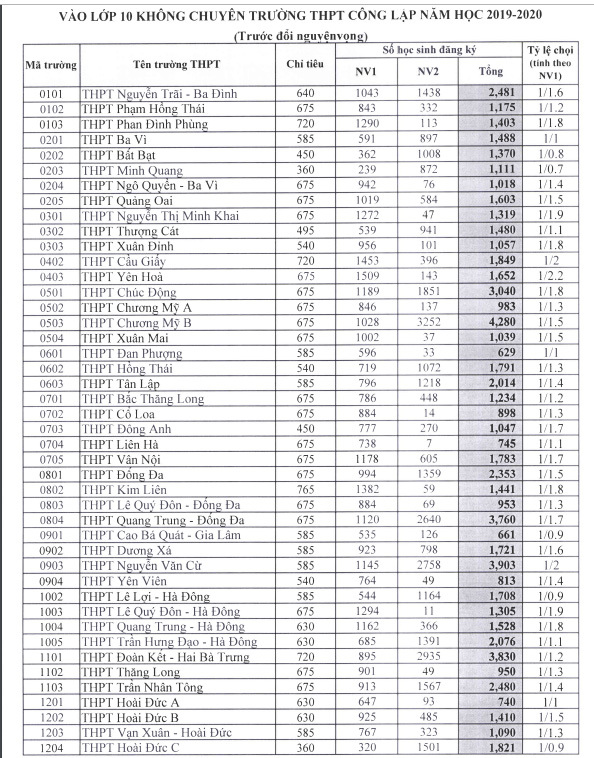Hôm nay (15/5), Sở Giáo dục và Đào tạo Hà Nội công bố số lượng học sinh đăng ký thi vào lớp 10 của từng trường trung học phổ thông công lập năm học 2019-2020.