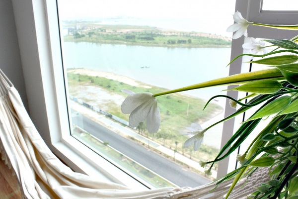 Đây là nơi có view đẹp nhất căn hộ, nơi thư giãn đúng nghĩa với cửa kính cỡ lớn, không hạn chế tầm nhìn hướng biển, có thể cảm nhận đầy đủ hương vị nắng, gió, đón nhận nguồn năng lượng dồi dào, tươi mới.