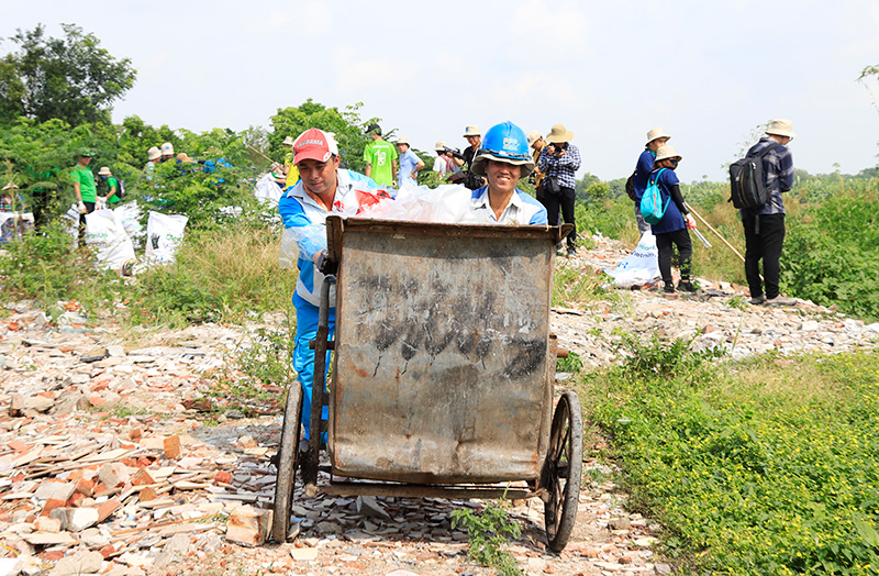 Hoạt động thu gom rác thải ở khu vực chân cầu Long Biên (Hà Nội) nằm trong chiến dịch bảo vệ môi trường, hướng tới Hà Nội xanh của Câu lạc bộ Keep Hanoi Clean. |