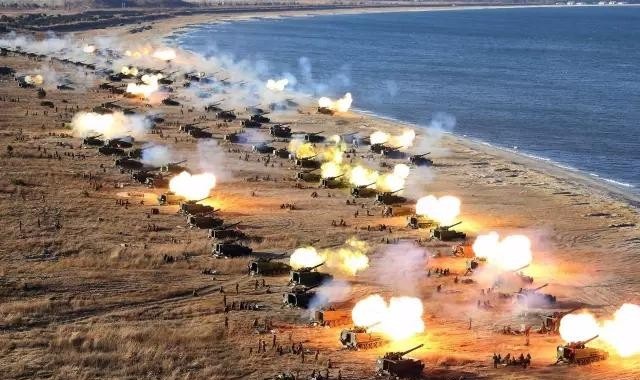 “Các tàu ngầm đã nhanh chóng nổi lên mặt nước và thực hiện cuộc tấn công ngư lôi vào tàu chiến của đối phương, trong khi các máy bay chiến đấu và máy bay ném bom ở phía trên thả bom vào mục tiêu”, Hơn 300 khẩu pháo tự hành với cỡ nòng lớn đã dàn hàng dọc bờ biển để đồng loạt khai hỏa”, KCNA cho biết.