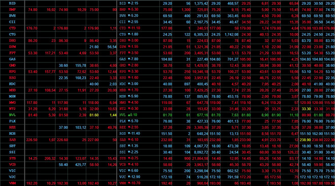 Bên cạnh đó, nhóm cổ phiếu bất động sản – xây dựng cũng lao dốc không phanh. Mã VIC của Tập đoàn Vingroup giảm 9.000 đồng, xuống còn 120.900 đồng/cp; mã CTD của Công ty CP Xây dựng Coteccons giảm 7.800 đồng, còn 138.200 đồng/cp.