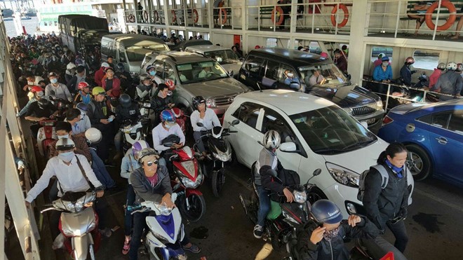 Phà Cát Lái mỗi ngày có hơn 45.000 phương tiện và hành khách qua lại. Cao điểm vào các dịp lễ, Tết số phương tiện qua phà lên đến 80.000-90.000 lượt, gây nên cảnh ùn ứ nghiêm trọng. |