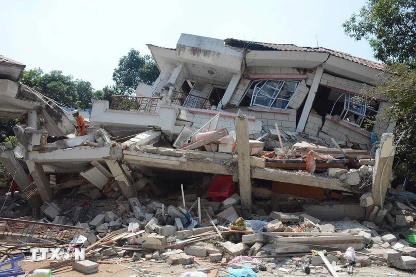 Hiện trường khu vực dân cư bị ảnh hưởng bởi động đất ở thủ đô Naypyidaw. Ảnh: TTXVN phát