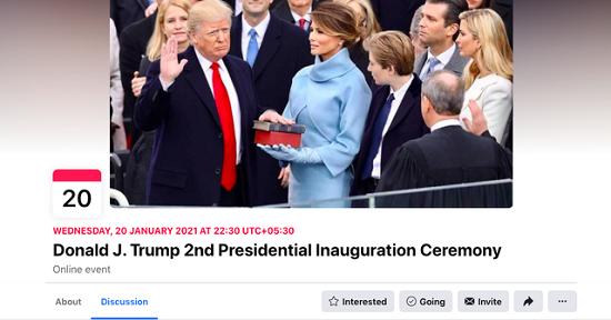 Sự kiện có tên “Lễ nhậm chức tổng thống lần thứ 2 của Donald J. Trump”, được lên kế hoạch trên Facebook dự kiến sẽ được tổ chức vào ngày 20/1 và đã có hơn 325.000 người bày tỏ sự quan tâm. Trong số đó, hơn 60.000 người nói rằng họ chắc chắn sẽ tham gia, theo Daily Dot.