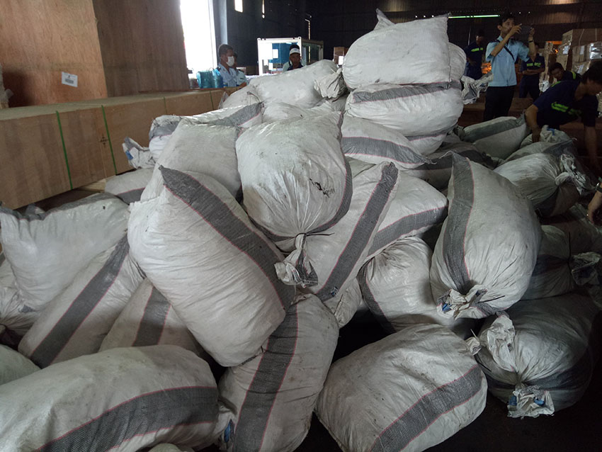 Qua kiểm tra, lực lượng chức năng phát hiện bên trong các container có nhiều bao tải chứa vảy nghi là tê tê và bên ngoài ngụy trang các khúc gỗ để cơ qua mặt cơ quan chức năng. Lực lượng đã thu giữ 210 bao tải chứa hơn 7 tấn vảy tê tê.