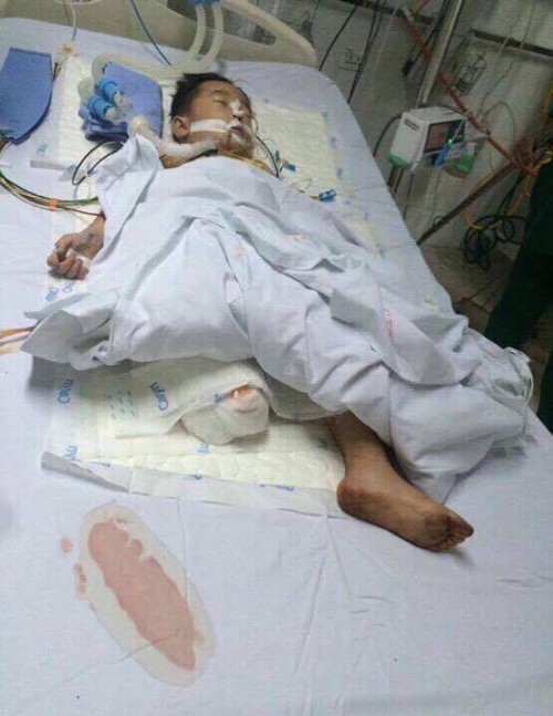 Ngay sau đó, người nhà tức tốc đưa Hải Đăng đến bệnh viện Đa khoa cửa khẩu Quốc tế Cầu Treo cấp cứu. Do vết thương quá nặng nên sau khi sơ cứu, bệnh nhi tiếp tục được chuyển đến bệnh viện Hữu nghị Đa khoa Nghệ An.