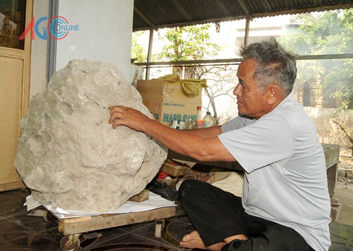Chủ nhân của hòn đá có mùi thơm kỳ lạ này là ông Nguyễn Duy Hải (trú tại Tứ Giác, TP. Long Xuyên).