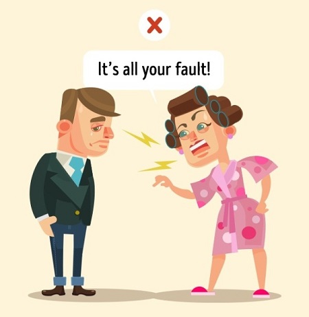 "Tất cả là lỗi của anh","Vì anh nên chúng ta suốt ngày cãi nhau", "Nếu không phải tại anh, thì chúng ta đã không bị đến muộn".