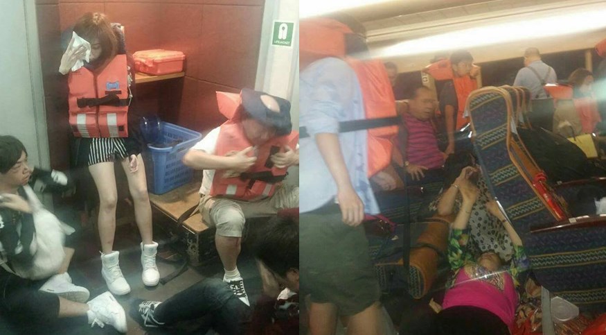 Hành khách hoảng loạn khi chiếc phà cao tốc bỗng nhiên gặp tai nạn. |
