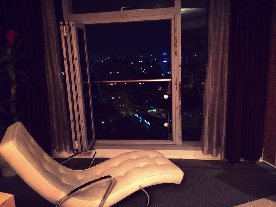 | Hồng Quế có thể ngồi trên ghế sofa hoặc chiếc ghế bành đặt gần cửa sổ nhìn ngắm thành phố từ trên cao qua khung cửa kính rộng. |