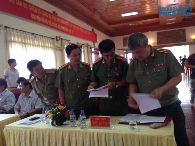 15h20: Lãnh đạo Công an tỉnh Yên Bái rà soát lại báo cáo chuẩn bị công bố tại buổi họp báo.