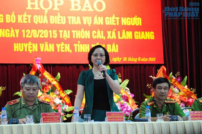 Chủ trì cuộc họp báo gồm Bí thư tỉnh uỷ Phạm Duy Cường, Chủ tịch UBND tỉnh Phạm Thị Thanh Trà, Giám đốc Công an tỉnh Đặng Trần Chiêu, Thủ trưởng Cơ quan Cảnh sát điều tra Công an tỉnh Yên Bái Phạm Ngọc Thắng.