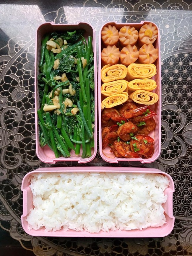 Mỗi hộp cơm cô nàng mang đi làm thông thường có 3 hoặc 4 món. Bữa cơm được nữ sinh trình bày đẹp mắt để giúp ăn ngon hơn. |