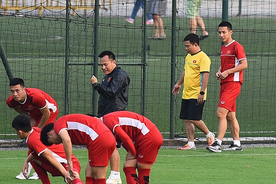 Hùng Dũng phải tập riêng vì chấn thương. Ảnh: VnExpress |
