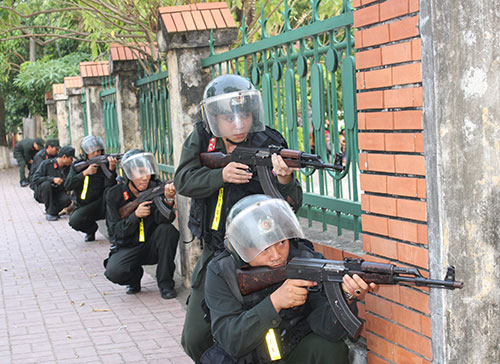 | Lực lượng cảnh sát 113 Công an tỉnh Hưng Yên triển khai đội hình "chiến đấu". |