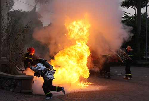 | Lực lượng Cảnh sát Phòng cháy, chữa cháy cũng có mặt kịp thời để xử trí tình huống. |
