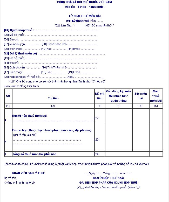 [22] Người nộp thuế môn bài: Ghi theo tên giống chỉ tiêu [04].