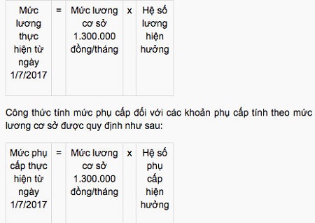 Mức lương, phụ cấp (kể cả hệ số chênh lệch bảo lưu, nếu có) và hoạt động phí của các đối tượng quy định được tính theo mức lương cơ sở 1.300.000 đồng/tháng từ ngày 1/7/2017.