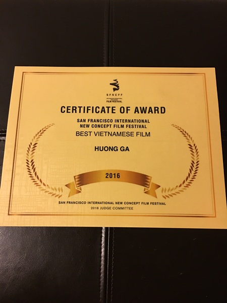 | Giải thưởng trong Liên hoan phim quốc tế ý tưởng mới tại San Francisco 2016 cho “Hương Ga”. |