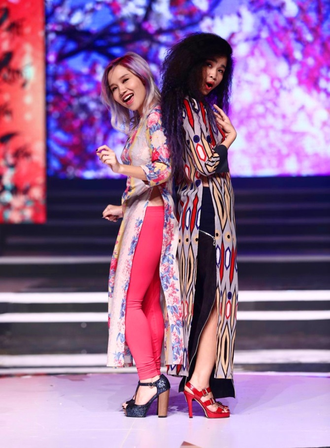 Trong khi đó, Đồng Lan và Mai Khôi vẫn trung thành với phong cách thời trang ấn tượng với 2 chiếc áo dài “không đụng hàng”. Cả hai sẽ song ca ca khúc Gió mùa xuân tới (sáng tác: Hoàng Trọng). |