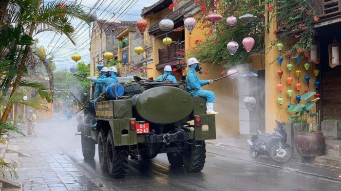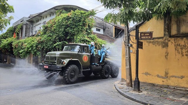 30 quân nhân cùng 6 xe chuyên dụng quân sự đã được điều động để phun hóa chất khử trùng ở các khu vực bị phong tỏa vì dịch Covid-19 tại thành phố Hội An, các tuyến đường gồm: Nguyễn Phúc Tần, La Hối, Nguyễn Phúc Chu, Lưu Quý Kỳ, Nguyễn Hoàng, Châu Thượng Văn, Ngô Quyền.