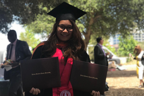 Huyền Chip khi nhận bằng tốt nghiệp cử nhân và thạc sĩ của Stanford. |
