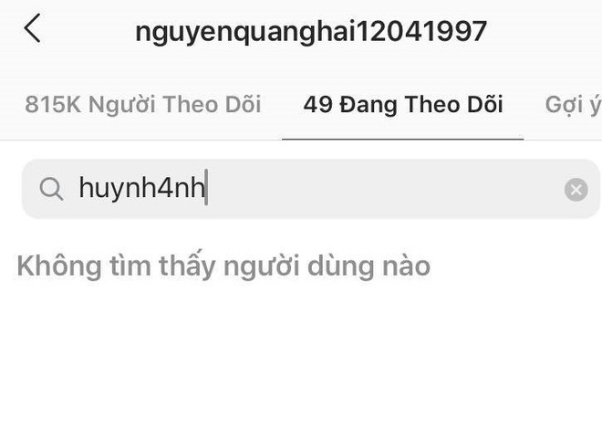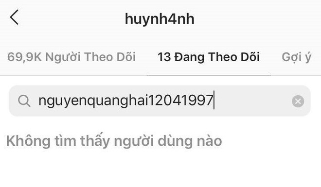 Huỳnh Anh và Quang Hải bỏ theo dõi nhau trên Instagram. |
