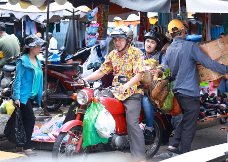 Mới đây, ekip làm phim hé lộ một số cảnh quay hài hước của diễn viên Trung Dân và Huỳnh Lập tại một khu chợ bình dân ở Quận 4, TP.HCM. Trong khung cảnh chật hẹp của khu chợ, 2 người đàn ông với đủ thứ đồ lỉnh kỉnh như gà sống, rau xanh,... trên chiếc xe gắn máy và bộ dạng ngơ ngác khiến những người dân xung quanh không thể nhịn cười.