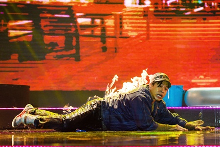Để đem đến cho khán giả sự chân thật nhất, dù rất sợ lửa do từng bị rơi vào cảnh cháy nhà, lại còn bị mắc kẹt bên trong nhưng Huỳnh Tiến Khoa cùng đồng đội vẫn hết sức liều lĩnh “chơi” với lửa nhiều lần tại Làng Hài Mở Hội. Anh muốn mang đến cho người xem cảm giác thật chứ không phải chỉ là hình ảnh ước lệ được truyền tải bởi hiệu ứng sân khấu, ánh sáng quen thuộc.