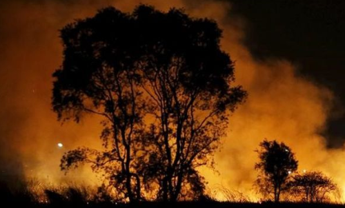 | Vụ cháy rừng gần khu vực đất than bùn ở vùng ngoại ô Palembang đảo Sumatra, Indonesia (Ảnh: Reuters) |