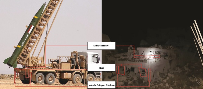 Mặc dù hình ảnh không thực sự rõ nét nhưng không khó để nhận ra đây chính là Maysalun - một biến thể do Syria chế tạo từ tên lửa pháo tầm xa không điều khiển Zelzal-2 của Iran.